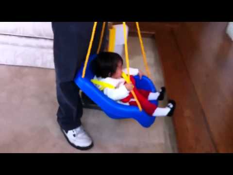 Video- We couldn't wait to hook the swing up so Dad played the role of tree: