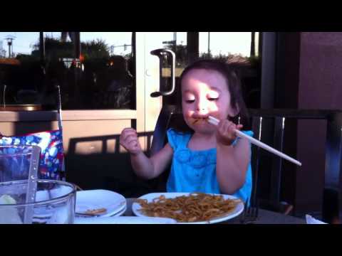 Mark your calendars! August 13, 2012. At 20.5 months Rosie successfully feels herself with chopsticks.