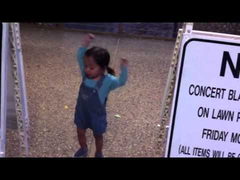 To give it some context, there is a stage set on a lawn on 1st street that is used for outdoor concerts. Rosie somehow knew that and ran straight for it yelling "dance!" (you hear her saying it toward the end). Baby's got some fancy footwork! ...and only breaks to do read.